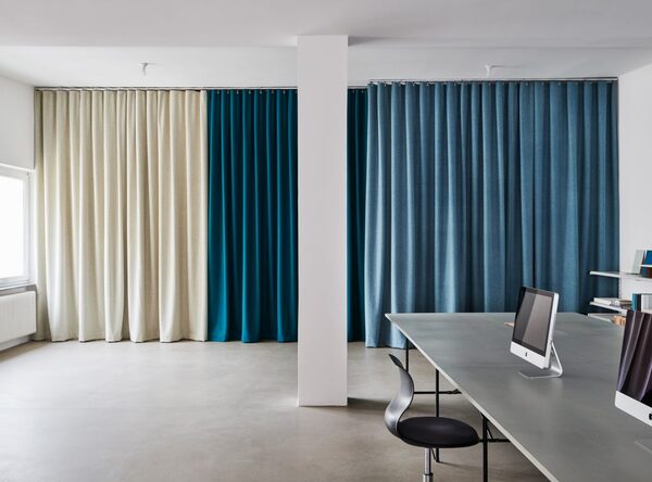 Với những văn phòng ít đồ đạc, nội thất theo hướng nghiêm túc thì bạn có thể chọn những loại rèm kéo đơn giản như rèm kéo, rèm vải ít họa tiết nhé!