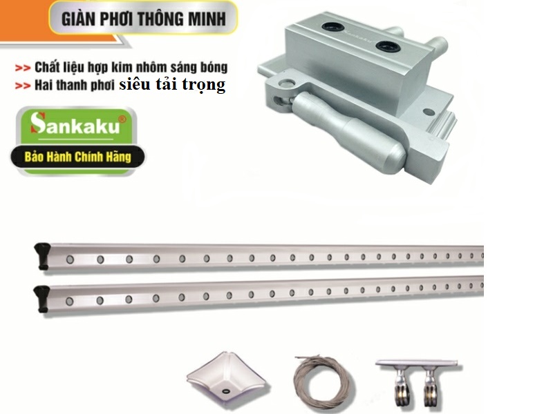 Giàn phơi Sankaku S02 được thiết kế cải tiến với khối nhôm đúc hình chữ nhật siêu bền.