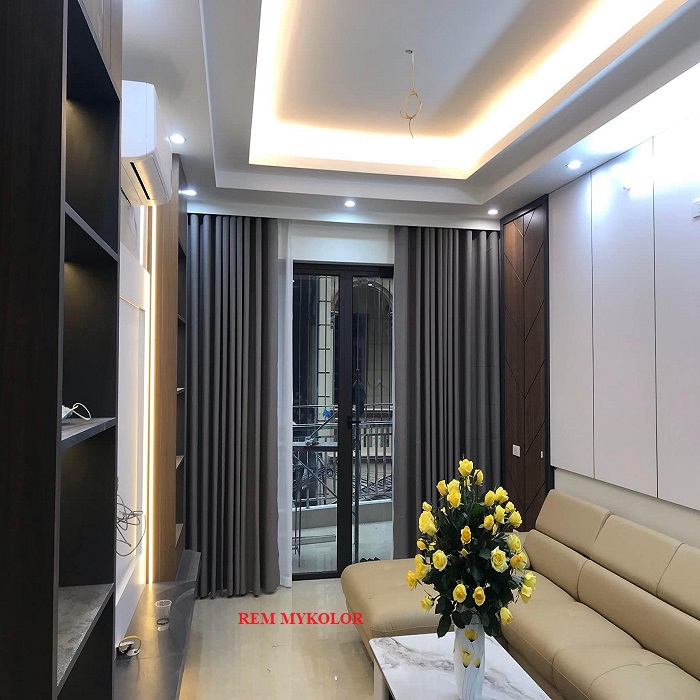 Rèm vải 2 lớp cao cấp màu ghi đâm tôn lên vẻ sang trọng cho căn phòng