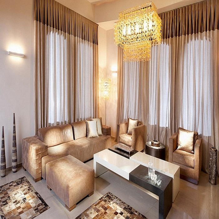 -Thứ năm,ánh sáng trong không gian:Với không gian phòng khách có thiết kế khung cửa lớn nên ánh sáng vào phòng rất nhiều sẽ khiến cho bạn cảm giác chói mắt. Để lựa chọn được chiếc rèm vải phòng khách đẹp, ưng ý mà vẫn khắc phục được những vấn đề này bạn có thể chọn những tấm rèm có tone màu tối hơn một chút hoặc sử dụng những loại rèm nhiều lớp.