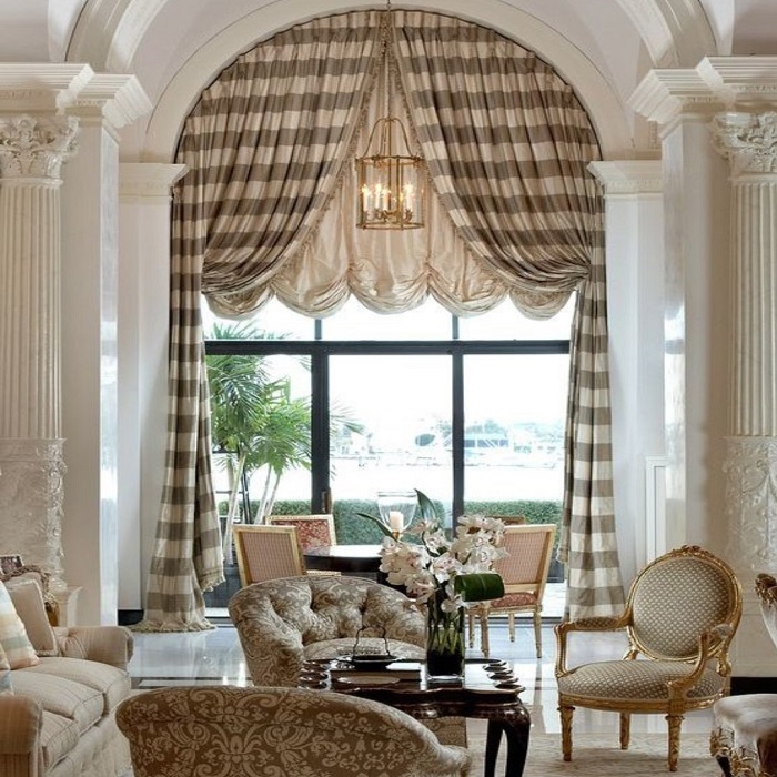 Rèm cửa vòm cho phòng khách làm tăng thềm phần sang trong cho không gian.