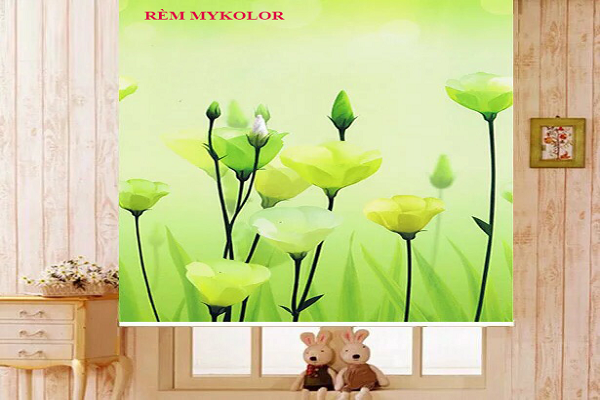 - Bộ rèm in tranh hoa xanh sẽ là điểm nhấn cho căn phòng, tô điểm cho căn phòng tạo nên căn phòng siêu yêu, siêu đẹp.