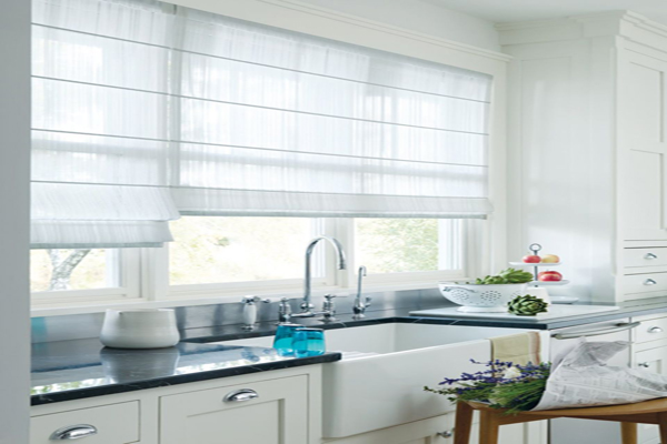 Rèm roman đem lại sự ấm cúng cho không gian phòng bếp