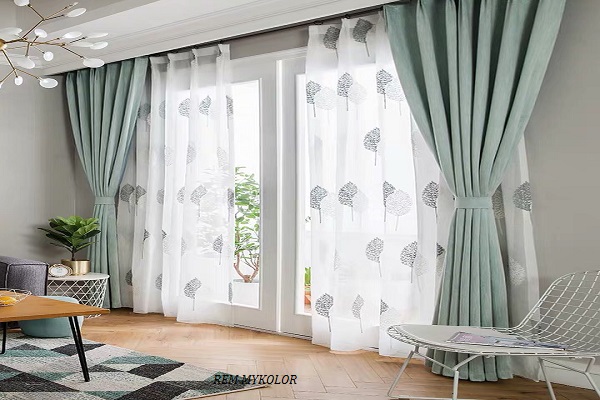 Đặc biệt kết hợp lớp vải voan màu trắng sẽ làm nổi bật màu xanh ngọc. Đây là mẫu rèm khá lý tưởng cho những căn hộ theo đuổi phong cách nội thất tân cổ điển. Thể hiện sự trang nhã, nhẹ nhàng, lãng mạn và thân thiện với môi trường.