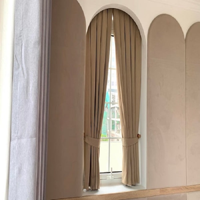 Rèm vải cho cửa vòm tạo nên không gian sang trọng và hiện đại