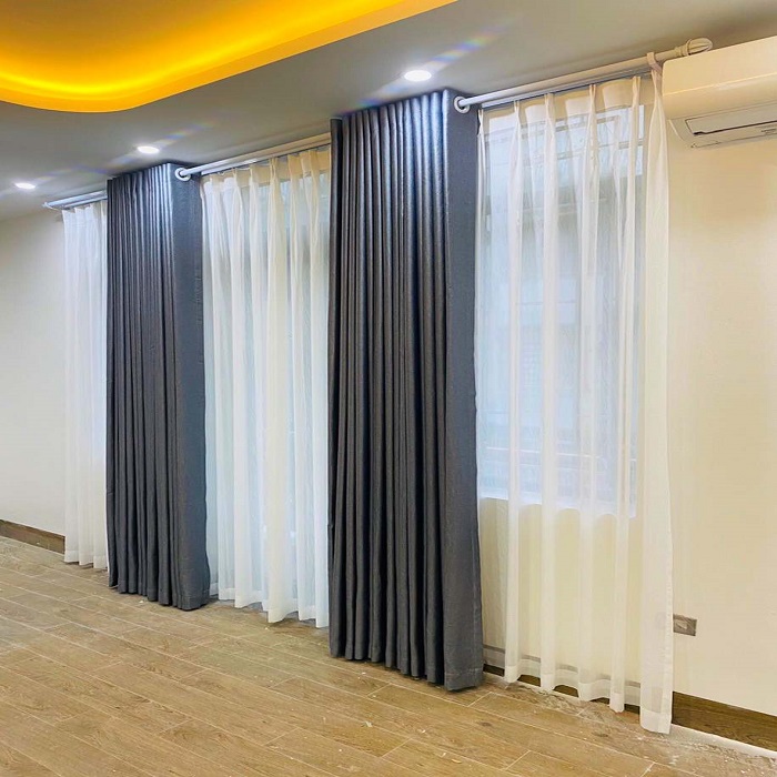 Rèm vải 2 lớp: gồm 2 lớp mỏng và dày thích hợp cho các nhu cầu và mong muốn điều chỉnh ánh sáng vào phòng nhiều hay ít. Lớp vải voan mỏng vẫn giữ được sự riêng tư cho gia đình, nhưng mang đủ ánh sáng để sinh hoạt mà không cần bật thêm đèn.