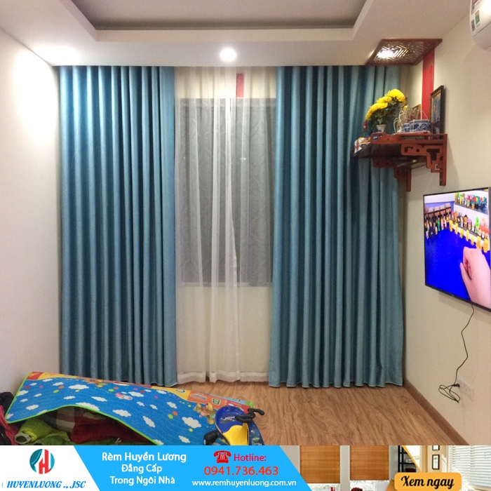 Rèm vải giảm giá màu xanh như hình ảnh thực tế mà chúng tôi sắp đề cập dưới đây nằm trong chương trình Ưu đãi của Rèm Mykolor