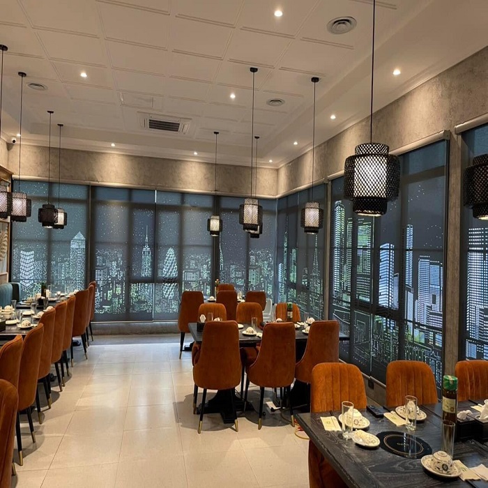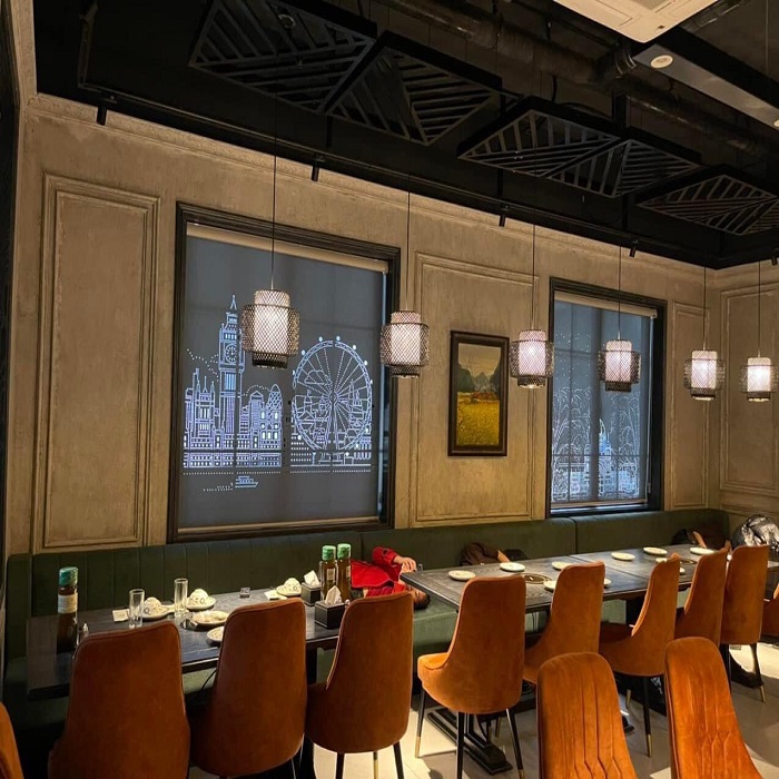 Rèm xuyên sáng Hàn Quốc lắp đặt tại nhà hàng