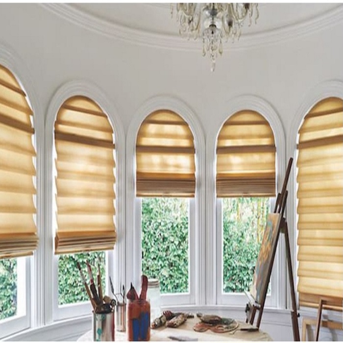 Rèm Roman cho cửa vòm giúp điều chỉnh và ngăn lượng ánh sáng vào phòng một cách tốt nhất.